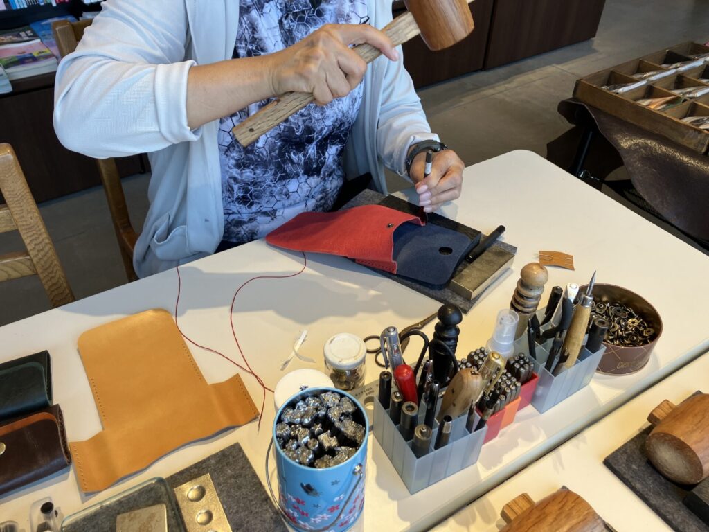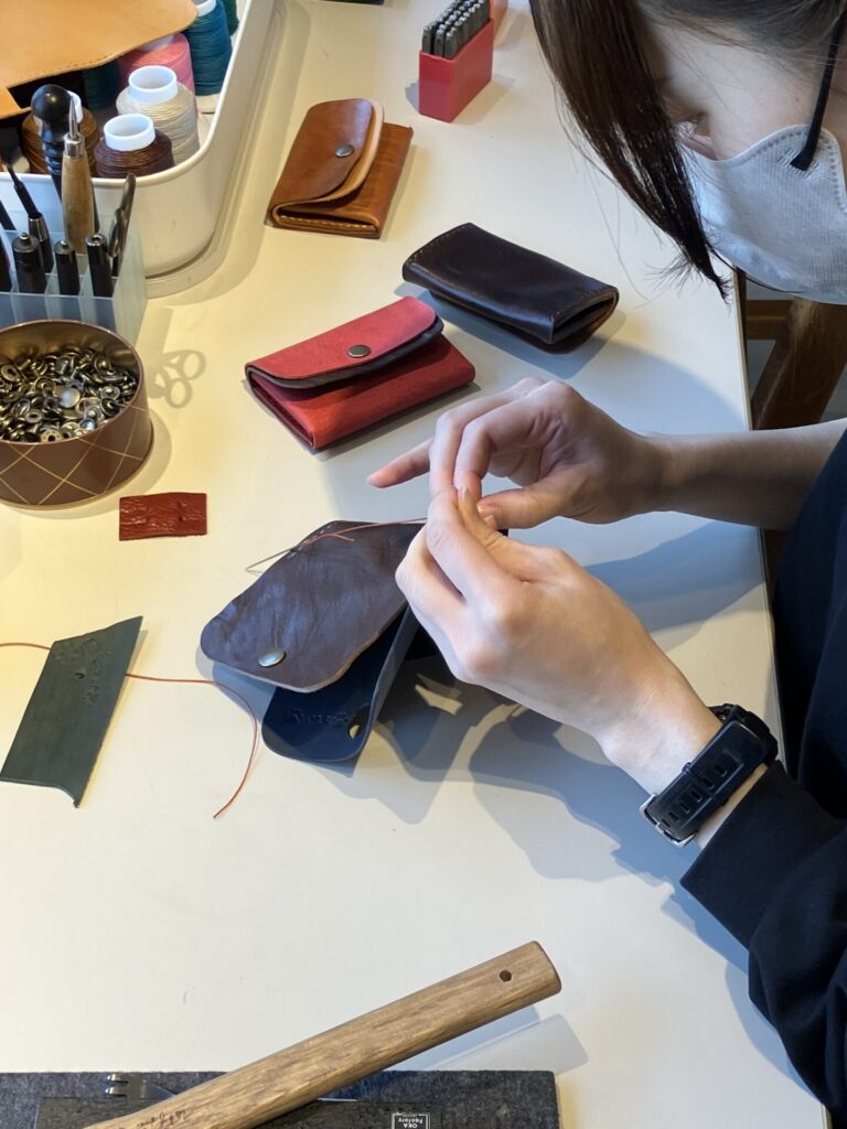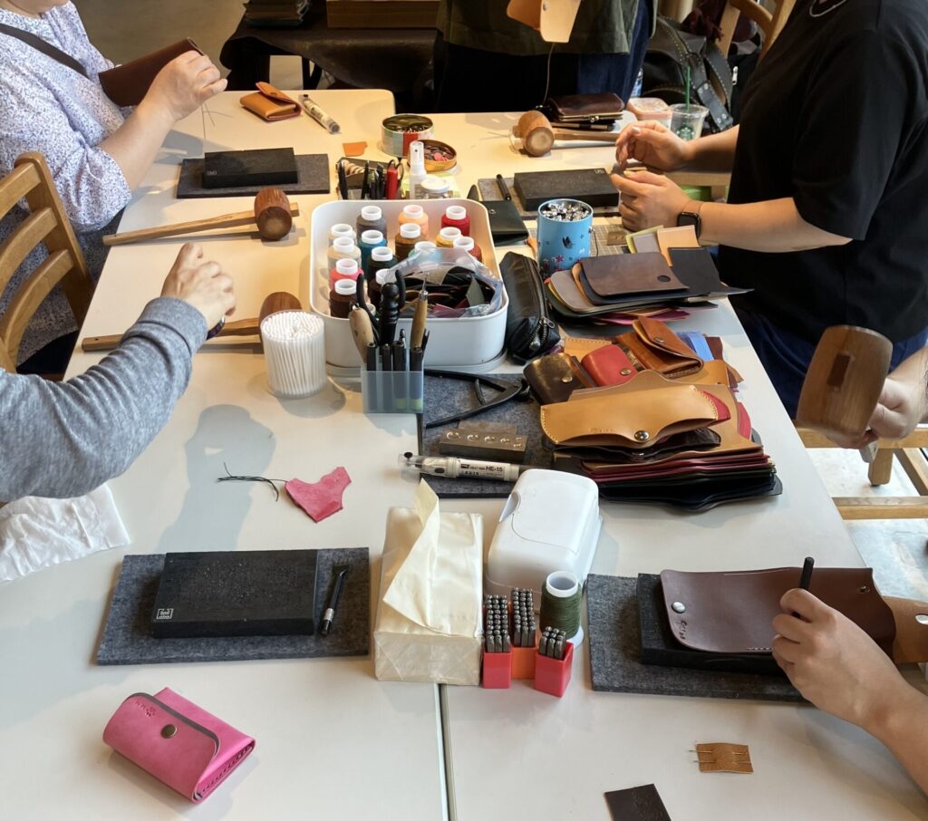 今回の革教室では、自分の好きな革色や、糸、革に刻印するスタンプに至るまですべて選び、製作ができます。