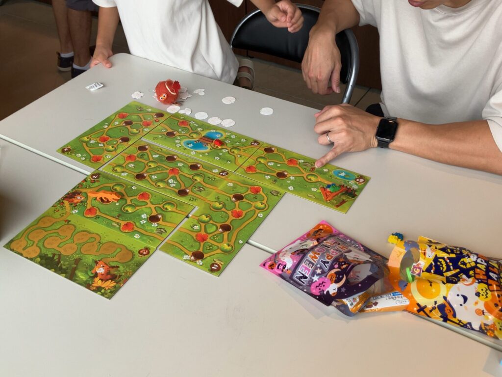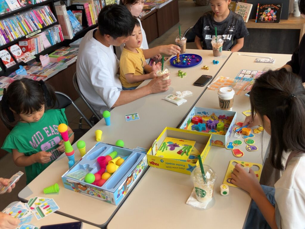 読み聞かせの後は、ボードゲーム会です。今回もたくさんのボードゲームが揃っていました。