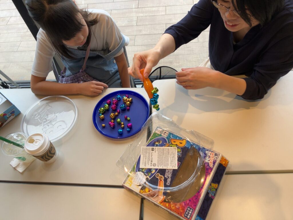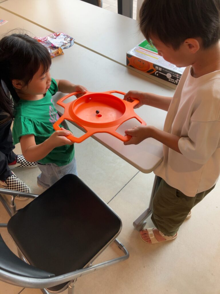 持ち玉のボールを落とさないよう競い合うシンプルな玉落としゲームや、持ち色の鈴を磁石で取り合うゲーム、みっつことばを揃えて早取りするカードゲームや、スピード勝負で白熱するスピードカップ、名前を付けて早く呼ぶナンジャモンジャ……